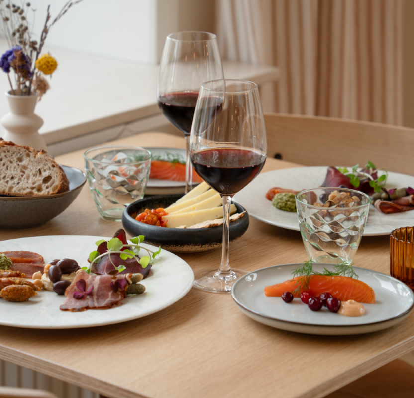 Dishes are served as social dining